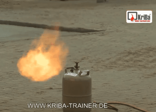 סימולטור של מיכל גז סטנדרטי לצורך תירגול סגירת ברז וכיבוי להבות.